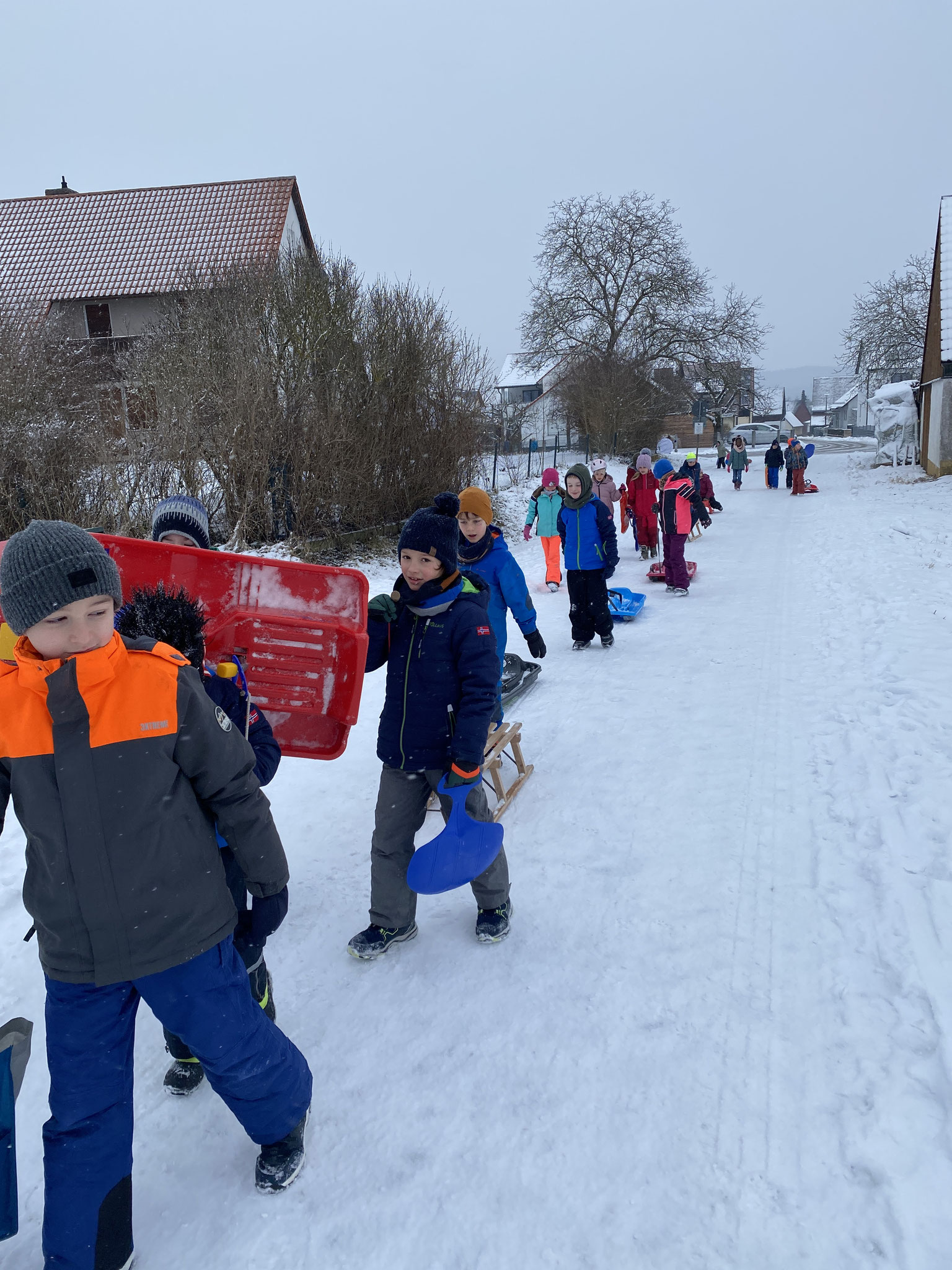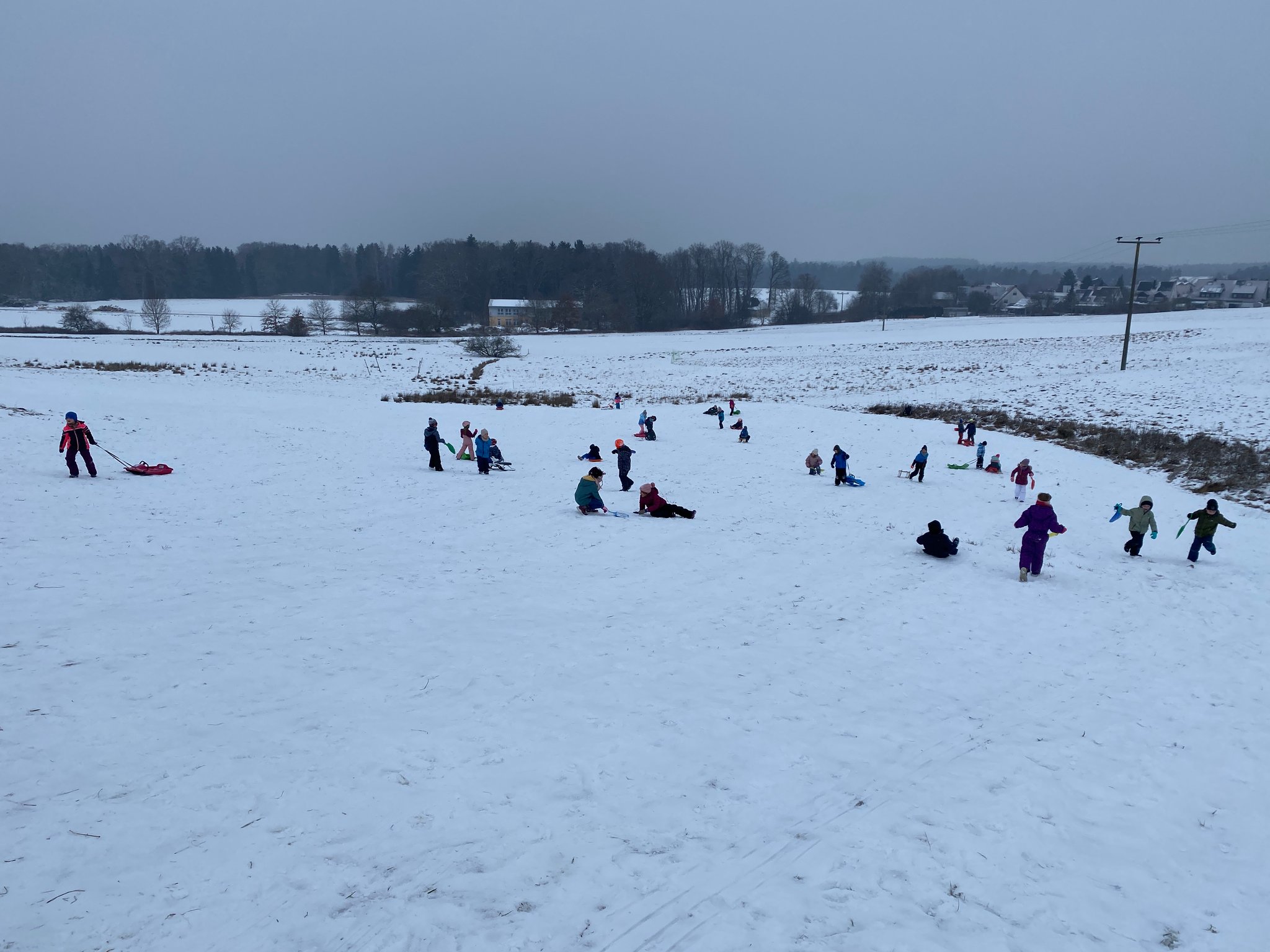 Einen ganz besonderen Wintertag erlebten die Klassen 1a, 1c und 2a am Schlittenberg in Oberferrieden.